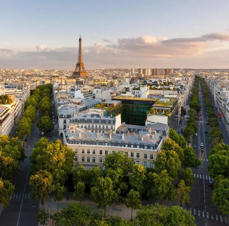 Emblemática em Paris, com o Obelisco e vistas para o Arco do Triunfo.